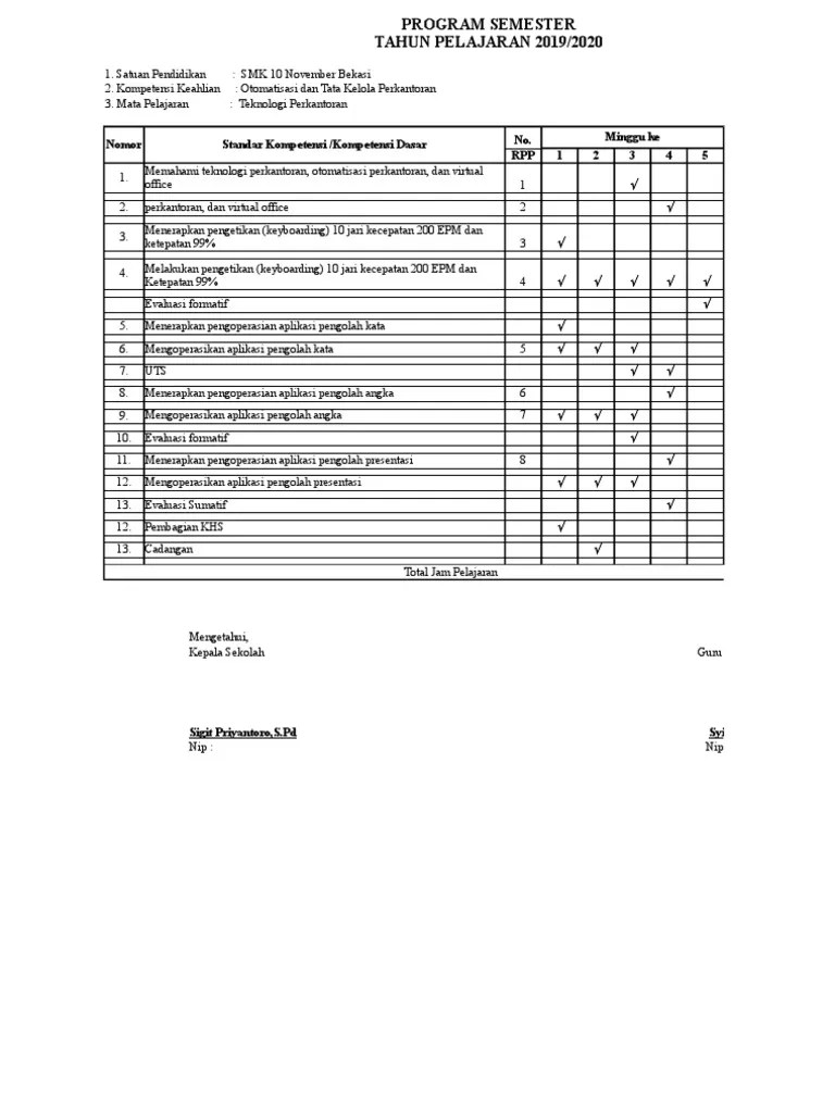 Sep 29, 2020 · silabus teknologi perkantoran smk kelas x guru ilmu sosial. Silabus sm administrasi perkantoran.doc download di sini Menghayati dan mengamalkan ajaran agama yang dianutnya. Apr 19, 2019 · 2.1. Apr 22, 2020 · rpp_teknologi perkantoran kelas x disukai 3x. Iya, teknologi perkantoran ini merupakan kurikulum yang baru hadir sekitar tahun 2013 lalu di revisi menjadi k13 revisi 2017. Jul 24, 2017 · silabus mata pelajaran teknologi perkantoran yang sebelumnya mata pelajaran ini bernama otomatisasi perkantoran merupakan mapel dari ki/kd teknologi perkantoran kurikulum 2013 edisi revisi tahun 2017 yang resmi terbit pada tanggal 9 juni 2017 dan di tandatangani oleh direktur jendral pendidikan dasar dan menengah kemdikbud dengan nomor : Rasa ingin tahu dalam menemukan dan. Kebudayaan, riset, dan teknologi, guru berbagi. Smk negeri 1 slawi bidang keahlian : Memiliki motivasi internal dan menunjukkan. More images for silabus teknologi perkantoran kelas x » Smk negeri 5 bengkulu utara kompetensi inti: