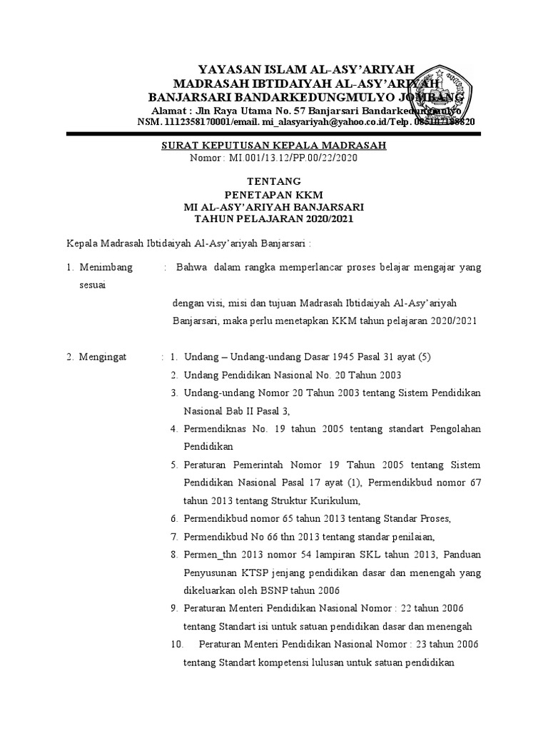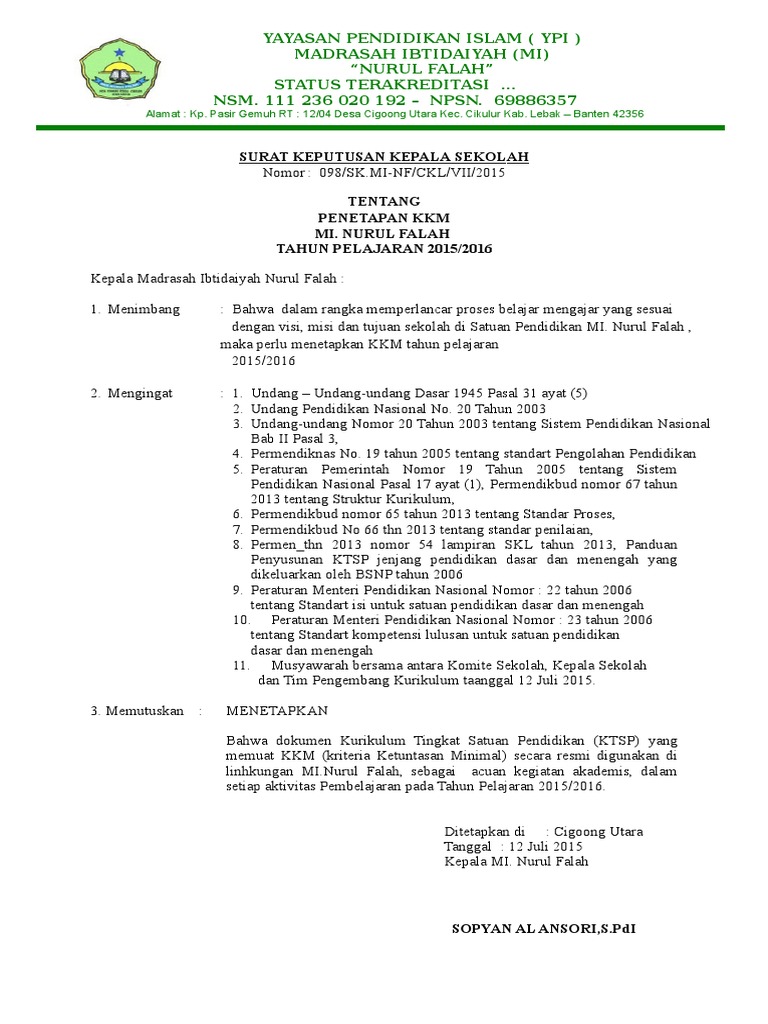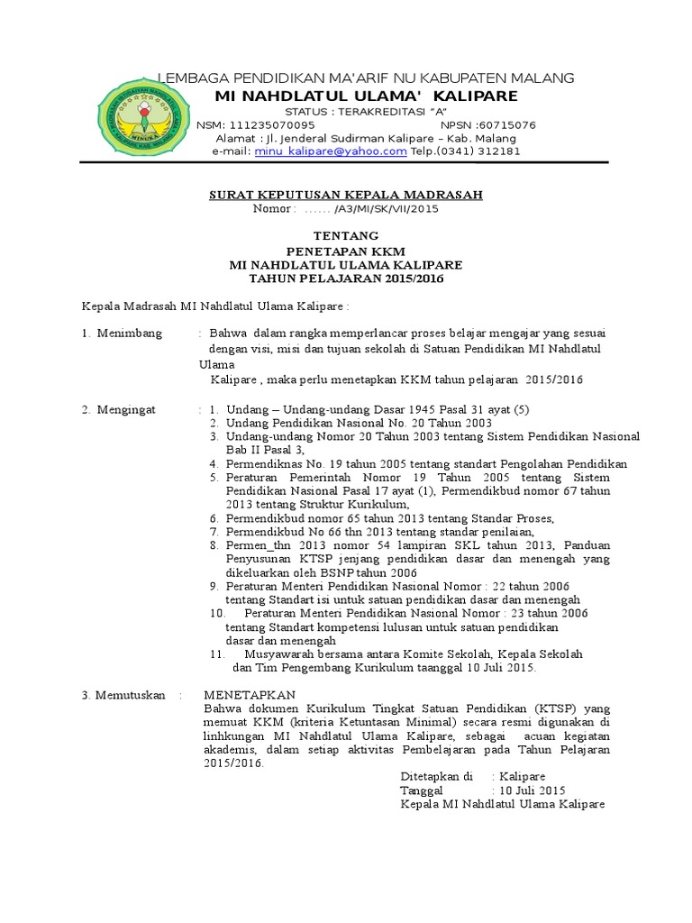 Sk penetapan kkm madrasah download format doc ms word contoh untuk mi (madrasah ibtidaiyah, mts (tsanawiyah), ma (aliyah) baik negeri maupun swasta mengacu kepada standar dokumen administrasi madrasah (madrasah administration document standards).