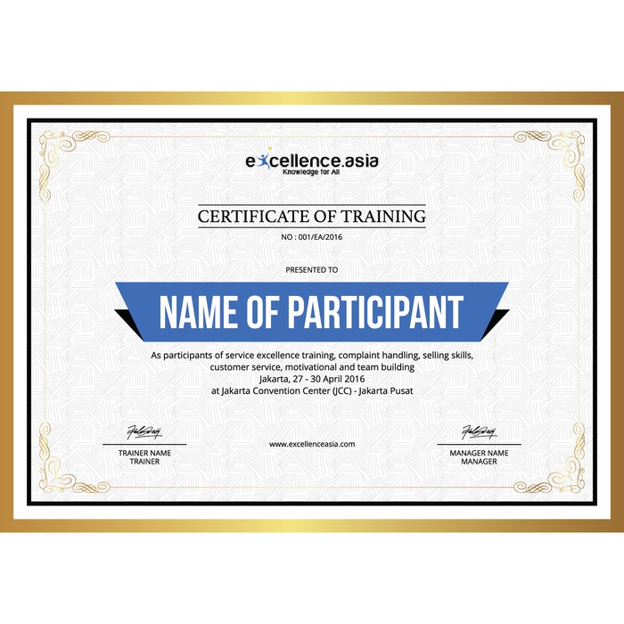 Silakan dipilih dari versi yang tersedia, . Misalnya, perusahaan mungkin memerlukan kursus satu hari pelatihan untuk semua personil penjualan, setelah itu mereka menerima sertifikat. Contoh scan sertifikat pelatihan bidang perikanan dengan. Sertifikat penghargaan terbaik di dunia. Training kit, sertifikat, foto bersama dan .